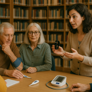 Diji-Sağlık Yaşlılık Etkinlik Kodu: Y1008 Öğrenme Süreci Kütüphaneci cihazların nasıl çalıştığını gösterir ve katılımcılar sırayla...